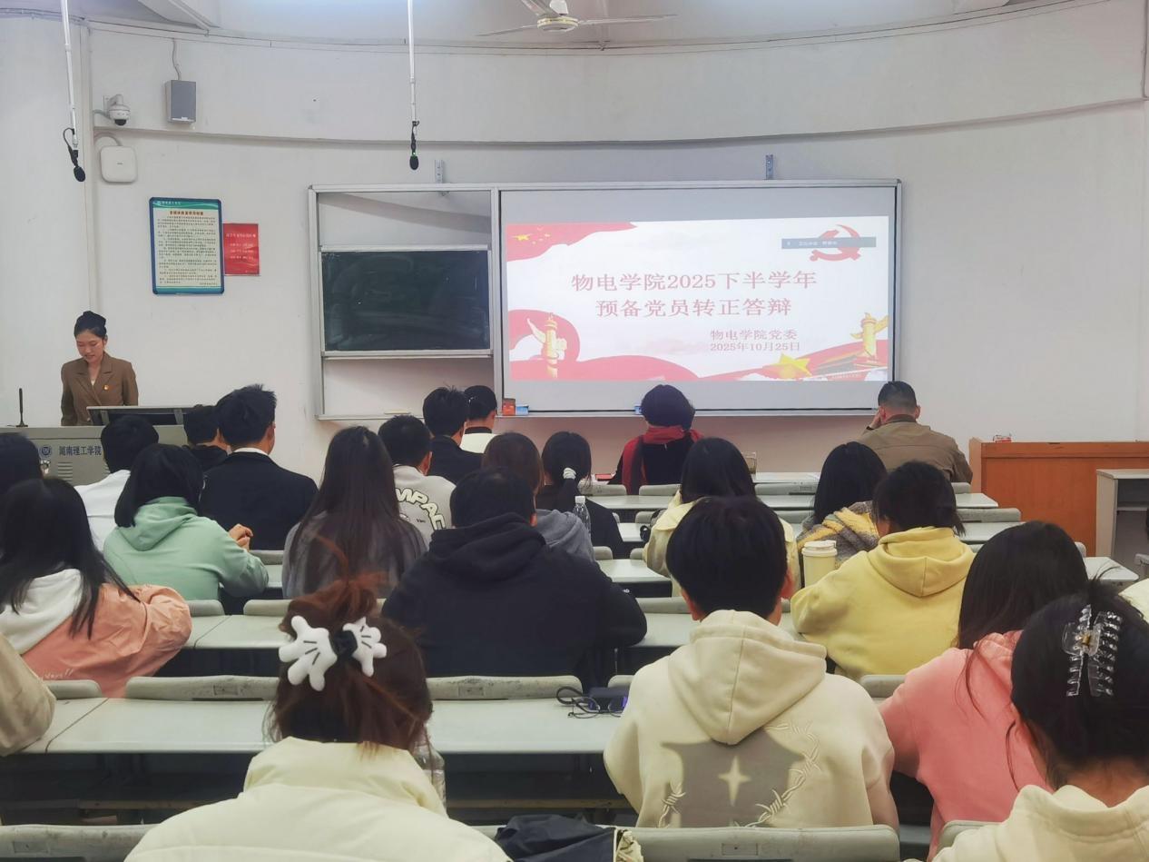 10月25日上午,公司党委在6T1教室开展2025年下半年预备党员转正答辩。党委书记周畅、副书记石红芳、员工第二党支部书记姚世鹏担任评委,全体员工党员、入党积极分子参加。