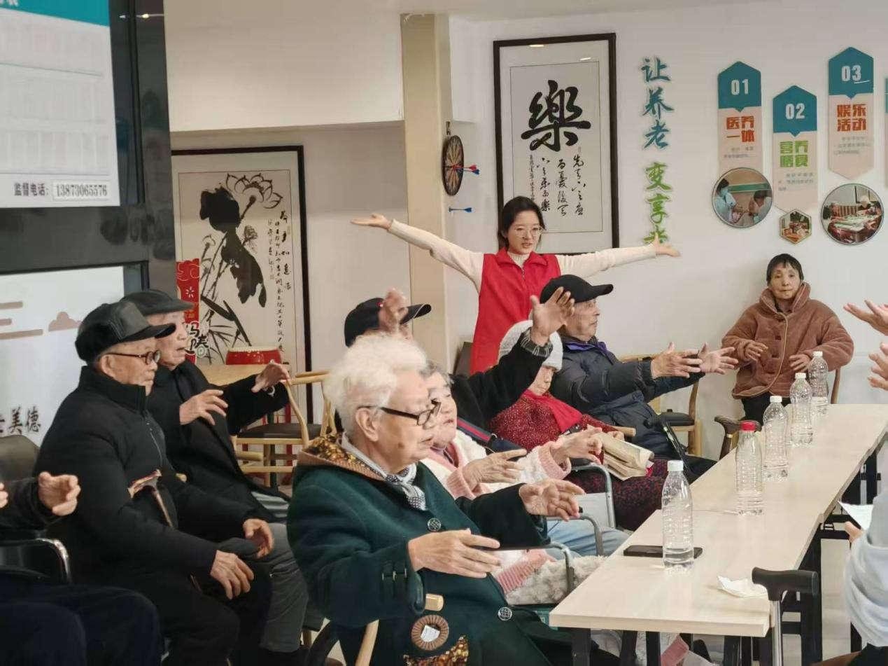 活动现场,志愿者向大家细致讲解抢瓶子、反动作等趣味游戏,老人们全神贯注、积极参与,在欢声笑语中锻炼反应能力、重拾童趣。随后大家跟随节奏完成手指操,在舒缓的律动中舒展筋骨、协调手脑,现场氛围温馨又欢乐。