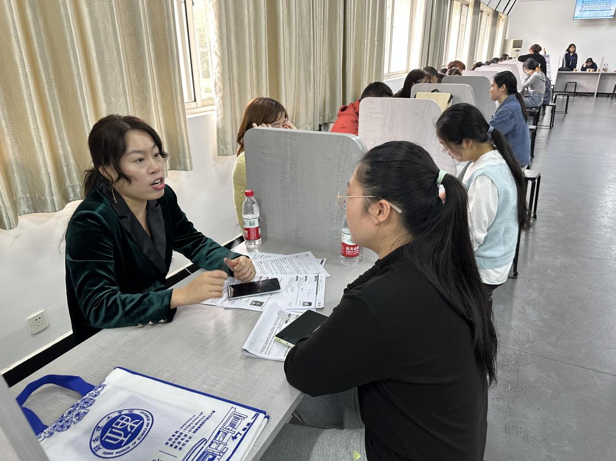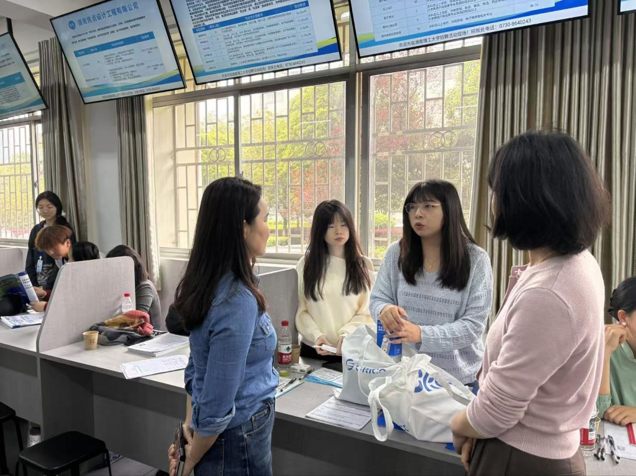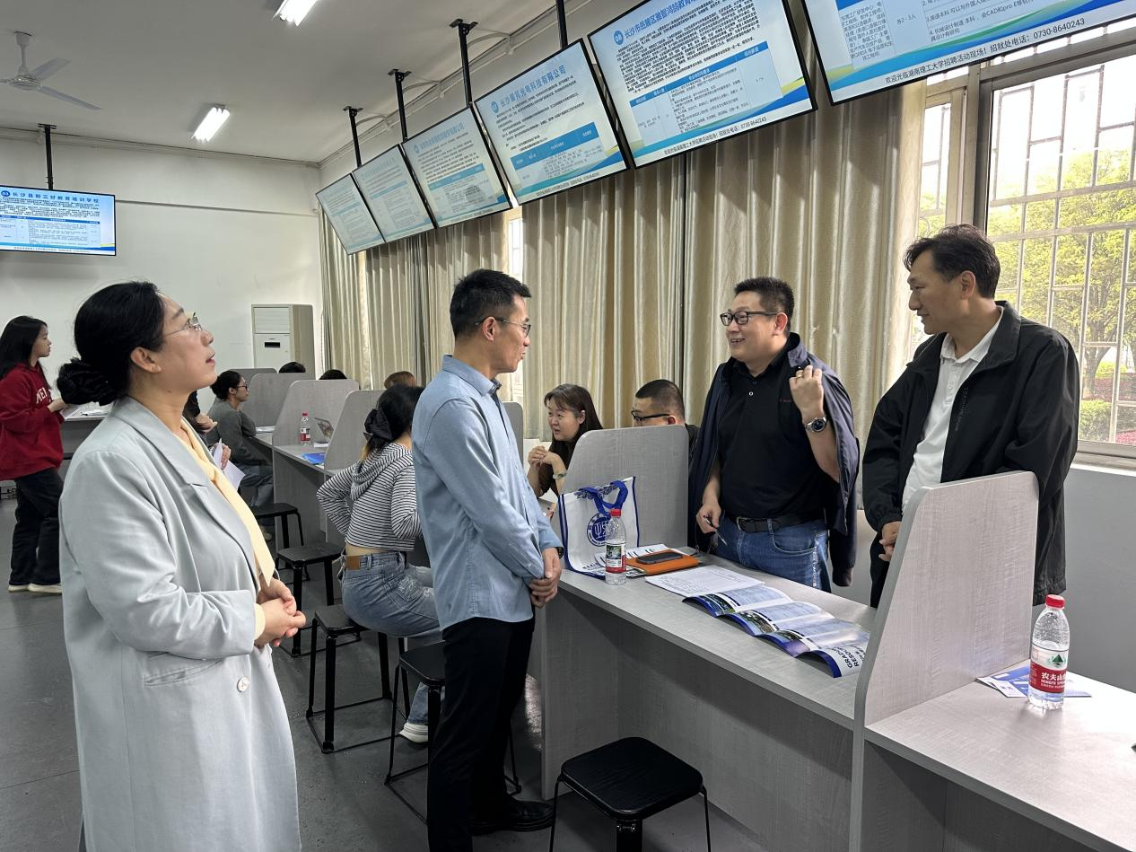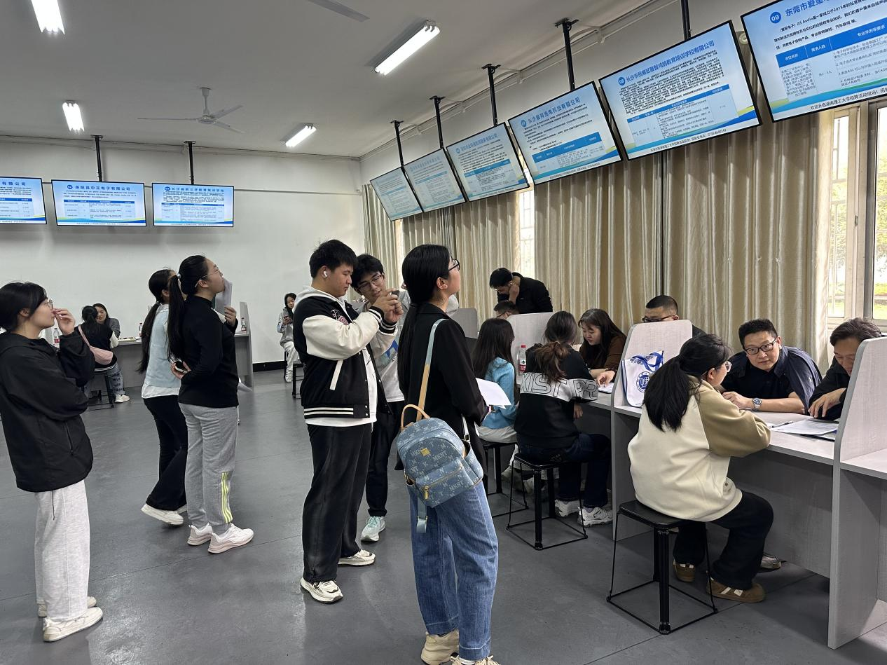 双选会现场气氛热烈,秩序井然。外语公司充分发挥语言与人文优势,邀请了福州译国译民集团有限公司、湖南省元创时代科技有限公司、广州市伊望鞋业科技有限公司等单位,需求涉及外语教学、涉外事务、翻译、跨境电商运营、课程咨询顾问等多个岗位。明升MS88则聚焦专业特色,重点邀请了岳阳中正材料有限公司、广州粤嵌通信科技股份有限公司湖南分公司、深圳市全球通检测服务有限公司等科技服务类企业,岗位覆盖硬件研发、技术服务、质量检测、智能制造等方向。