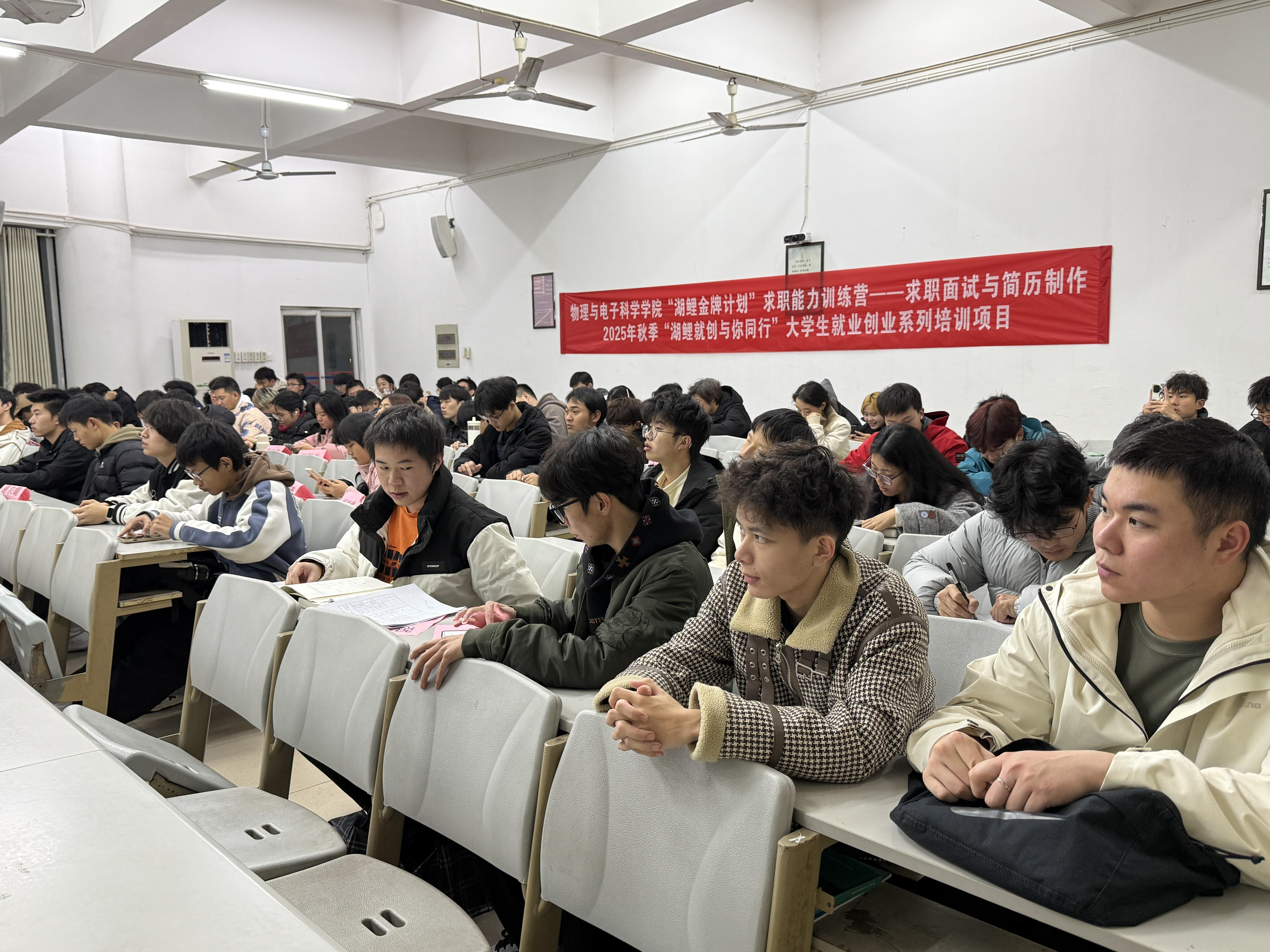 12月4日,明升MS88承办的“湖鲤金牌计划”求职能力训练营活动第三讲在62T2教室开展,本次活动主题为“求职面试与简历制作”。