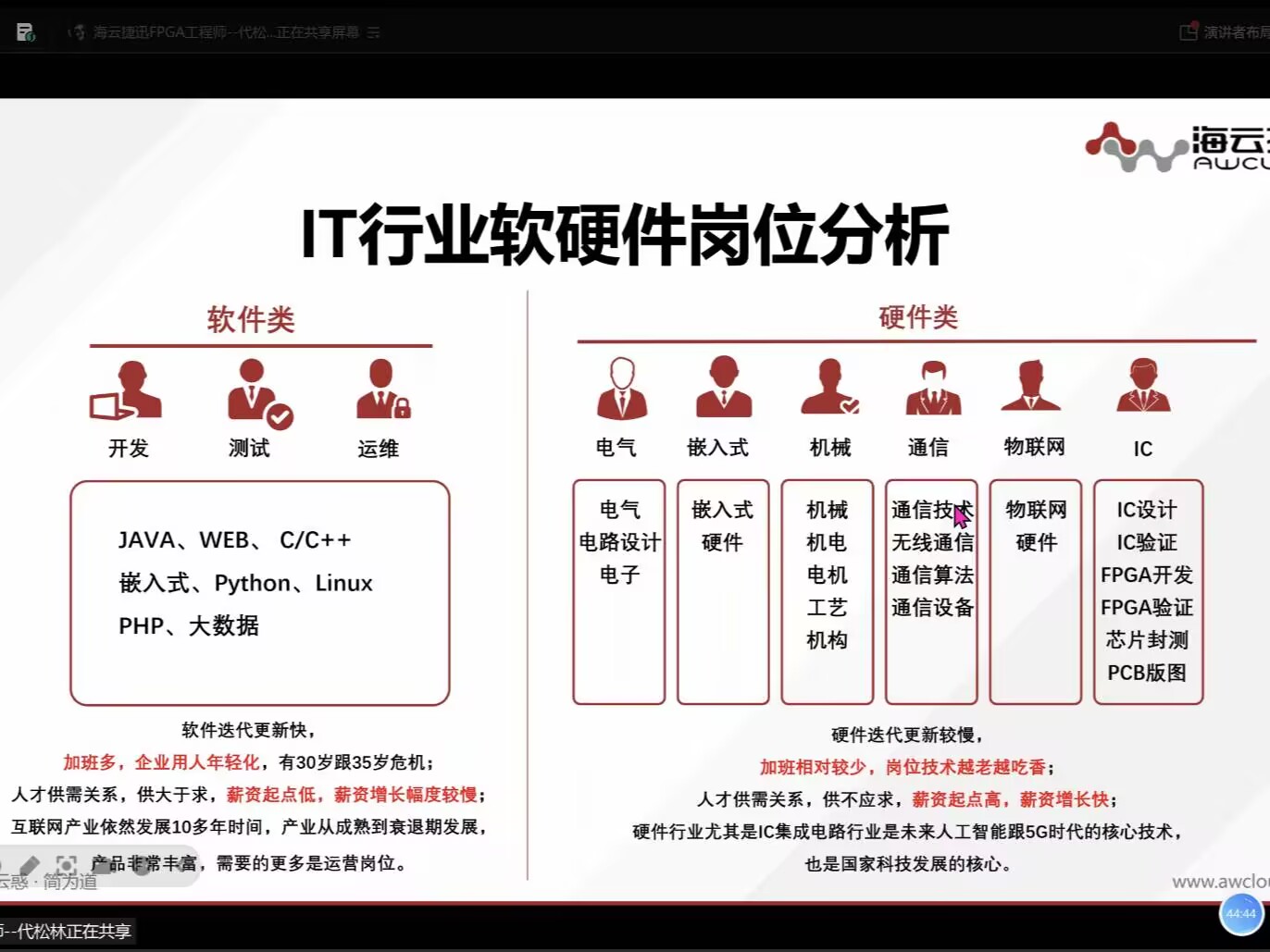 代松林还针对FPGA相关岗位如数字IC设计、芯片验证、现场应用工程师等的发展路径与技能要求展开说明,引导员工通过参赛提升工程实践与创新能力。