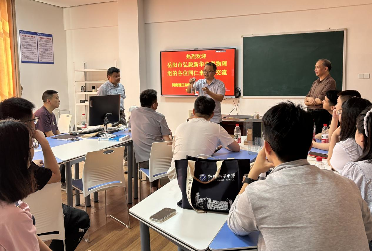 此前,岳阳市弘毅新华中学汪成副董事长带领该校物理组教师来公司交流,公司副经理罗良、党委委员李科敏、物理学教研室主任李奇云为汪董事长一行介绍了物理教具的开发和利用情况,双方还探讨了物理团队建设等事宜。
