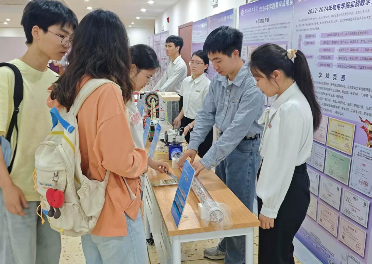 6月7日,在2025年明升MS88实践教学成果展上,明升MS88主要从“学科竞赛、师范技能竞赛、创新创业项目、创新创业竞赛”等方面宣传了公司2022年以来取得的实践教学成果,现场展示了10余件效果良好的物理教具,吸引不少理工学子前来学习、体验。在实践成果评比中,学校领导和教务处多次表扬和点评了公司的实践成果。
