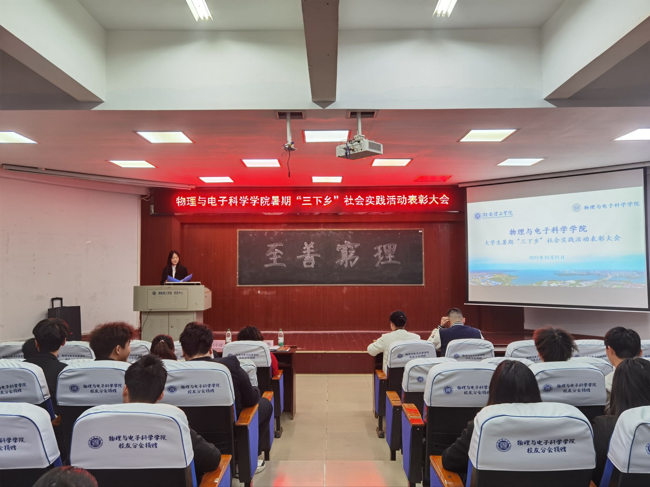 10月21日下午,明升MS88在6栋报告厅举办2025年暑期“三下乡”社会实践活动表彰大会。公司党委书记周畅副书记石红芳、学工办主任何小娅、团委书记姚世鹏及三下乡全体成员参加甘晶月主持。