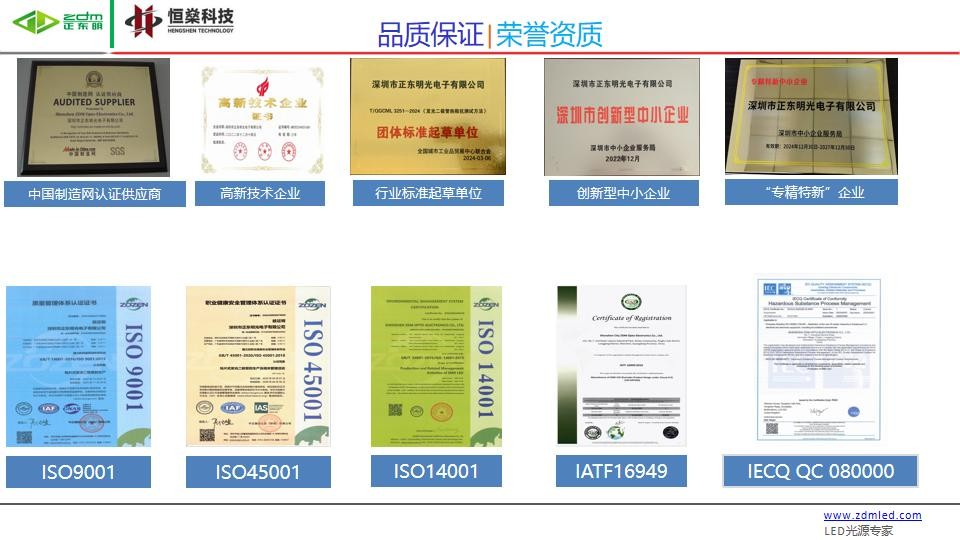 深圳市正东明光电子有限公司成立于2006年,是一家专注于LED封装研发与制造的国家高新技术企业,国家专精特新企业,拥有近20年行业经验。公司总部位于深圳,在惠州设有惠州恒燊科技有限公司,总厂房面积达14000㎡,具备70条封装生产线。